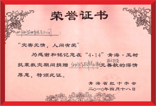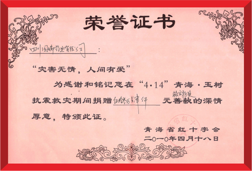 2010年4月19日,北京胡云绿色清洁科技有限公司(集团)向青海玉树灾区捐赠紧急救灾药品。